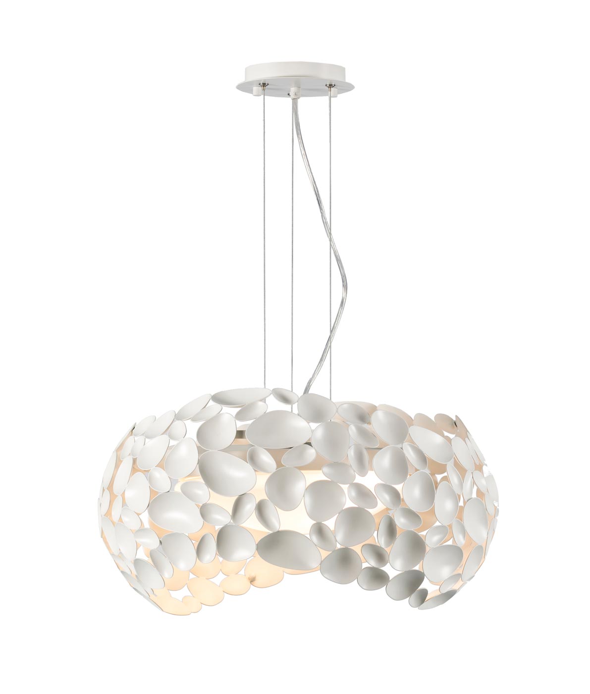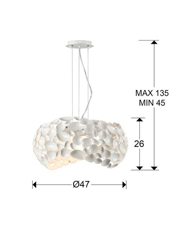 Lámpara moderna 47 cm diámetro, modelo NARISA. Ideal para la iluminación decorativa de interiores. Acabado en blanco mate. Fabricada en metal. Voltaje 110-240V y fuente de luz 5 x G9 6W luz cálida 3000K 2750Lm (incluida).