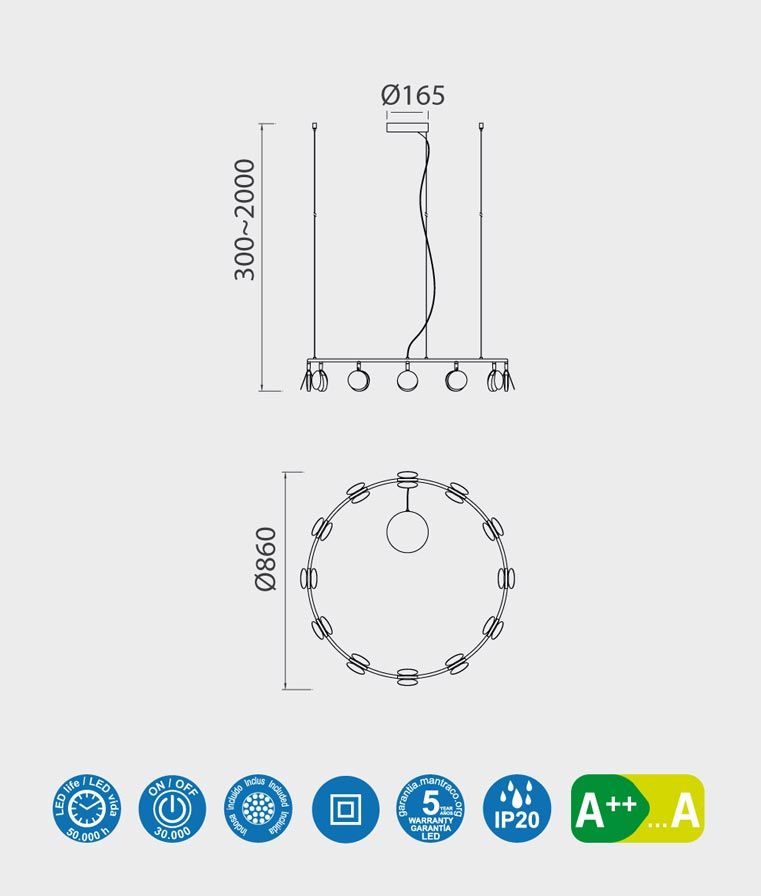Lámpara 86 cm Ø acabado oro SHELL LED