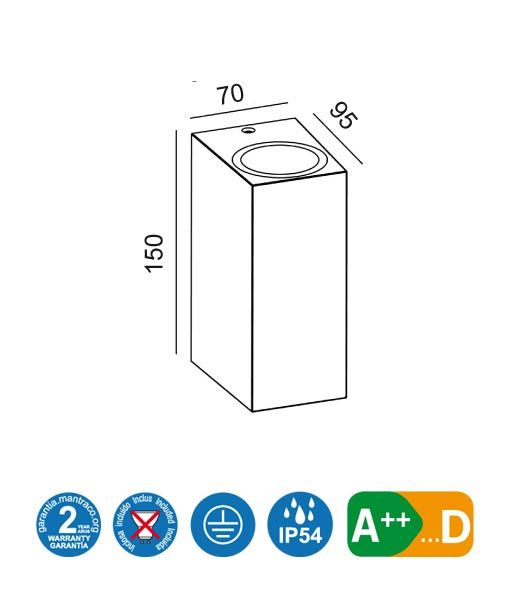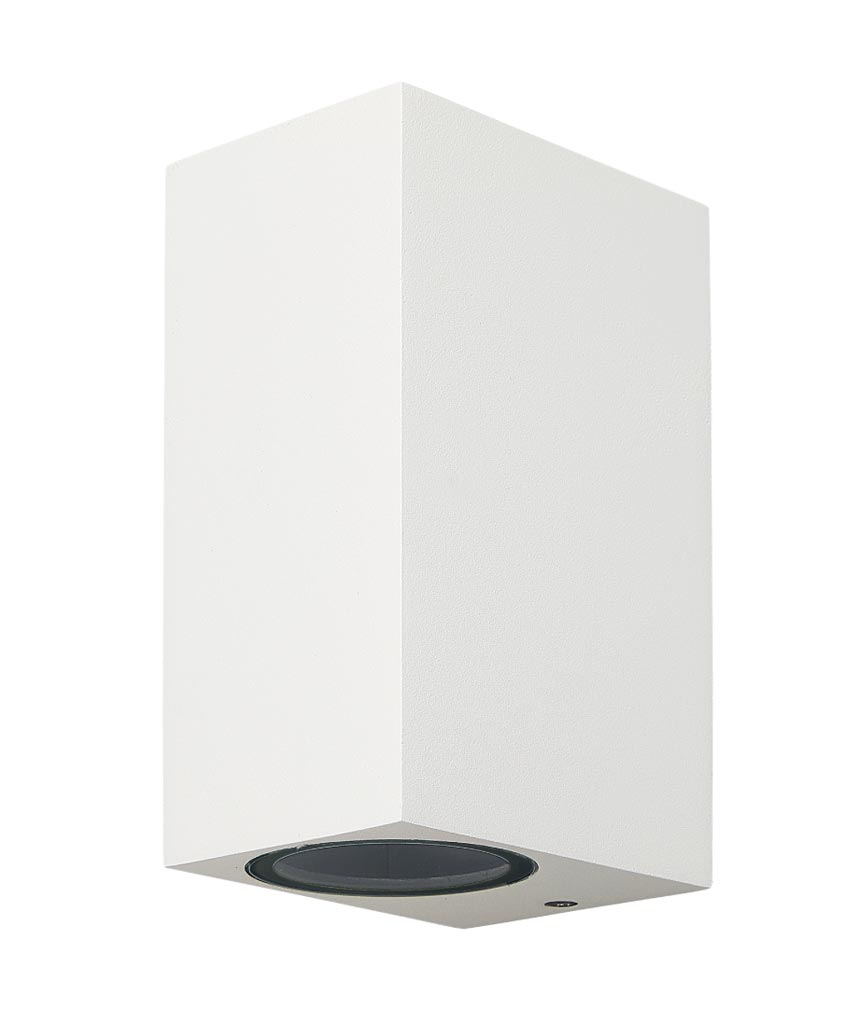 Aplique de pared exterior con luz superior e inferior modelo KANDANCHU. Iluminación decorativa y funcional ideal luminaria para el exterior del hogar con alta protección IP54. Acabado en color blanco. Diseño estilo moderno. Fabricada en aluminio y difusor de cristal. Voltaje 220-240V y fuente de luz 2 x GU10 MAX 10W (no incl.).