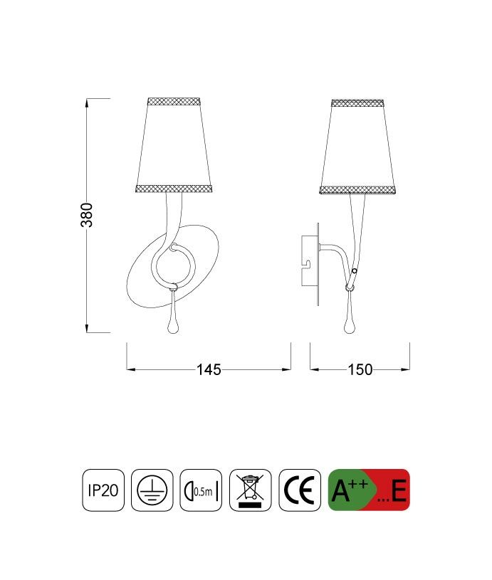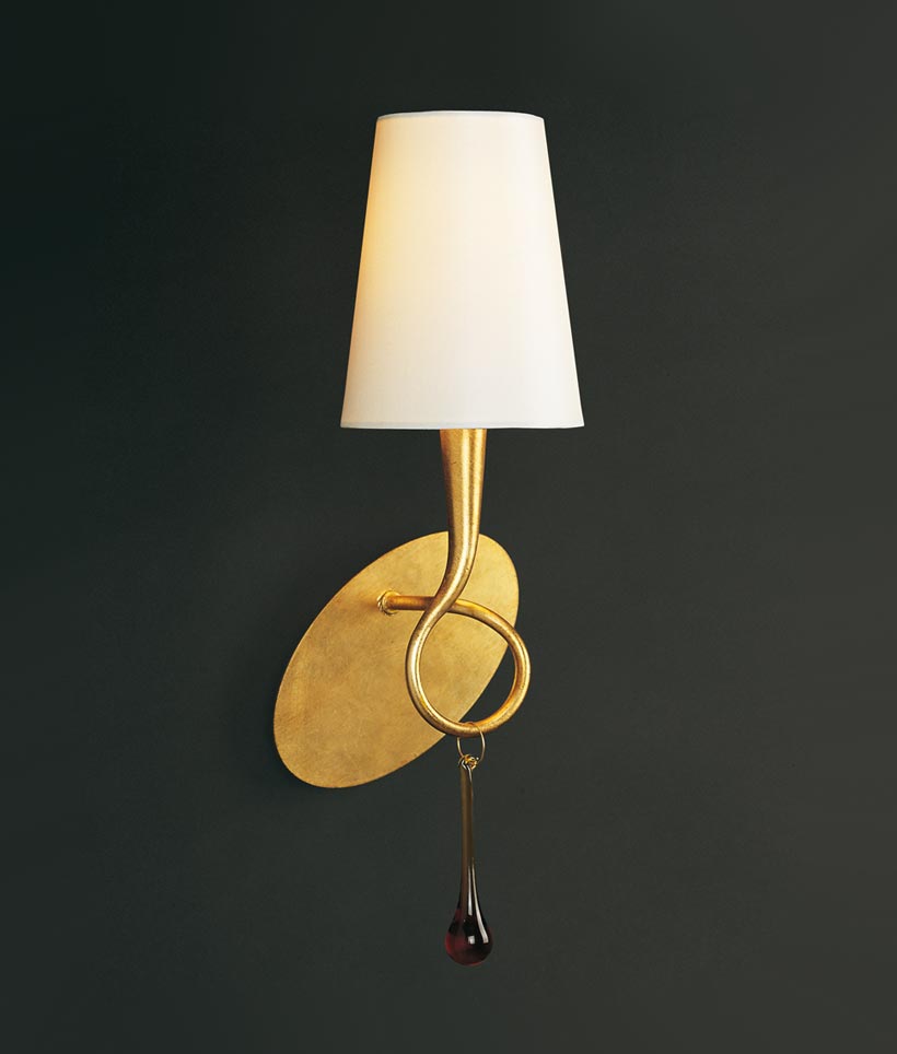 Lámpara aplique clásico PAOLA de la marca Mantra. Color blanco crema y dorado. Ideal para la iluminación interior con encanto. Fabricada en metal y pantalla textil. Iluminación por 1 x E14 20W (no incl.).
