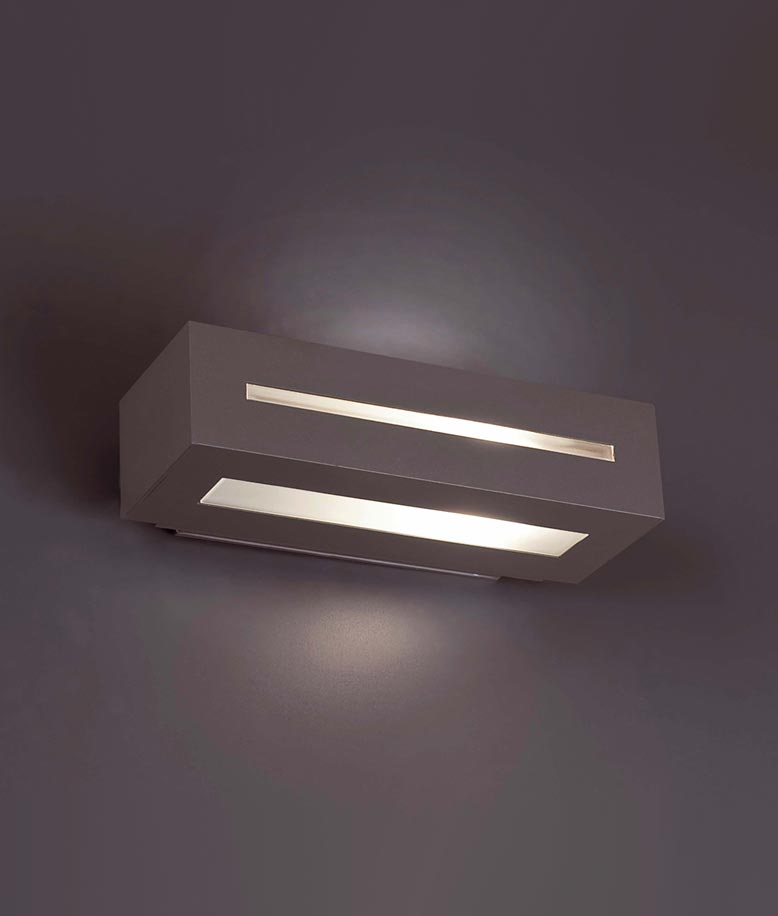 Lámpara aplique de pared WEST-1 para iluminación exterior de la marca Faro. Diseño de aplique moderno, ideal para iluminación decorativa y funcional para terrazas y jardines. Color gris oscuro. Fabricada en aluminio inyectado y difusor de cristal translúcido. Iluminación por 1 x E27 100W (no incl.).