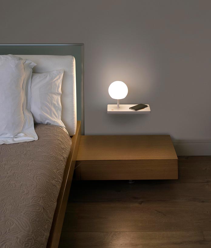 Lámpara aplique derecho blanco con USB NIKO LED de la marca Faro. Fuente de luz regulable. Cuenta con un cargador sin cables de madera. Interruptor en la base de fácil uso. Diseño estilo moderno, ideal para la iluminación de interiores en dormitorios, salones y hoteles. Fabricada en metal y cristal. Iluminación por LED luz cálida de 6W 3000K (incl.).