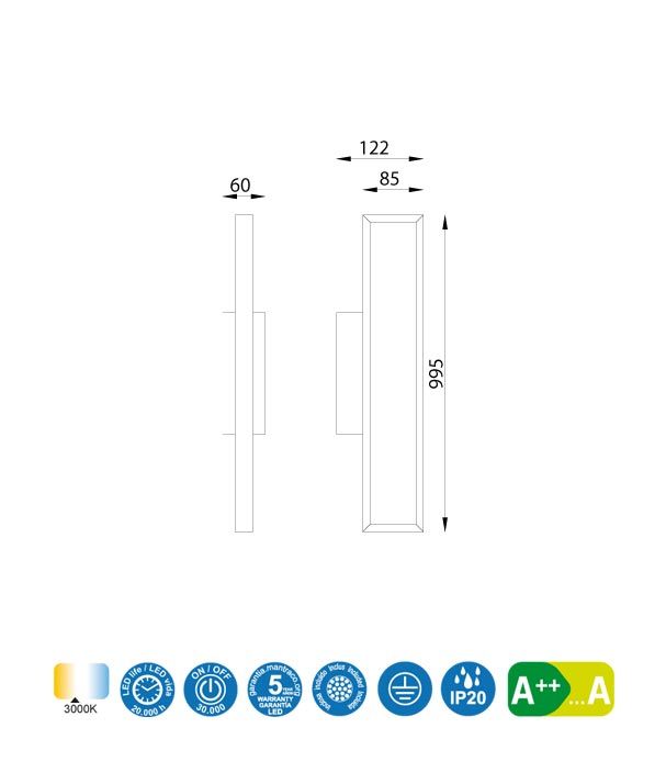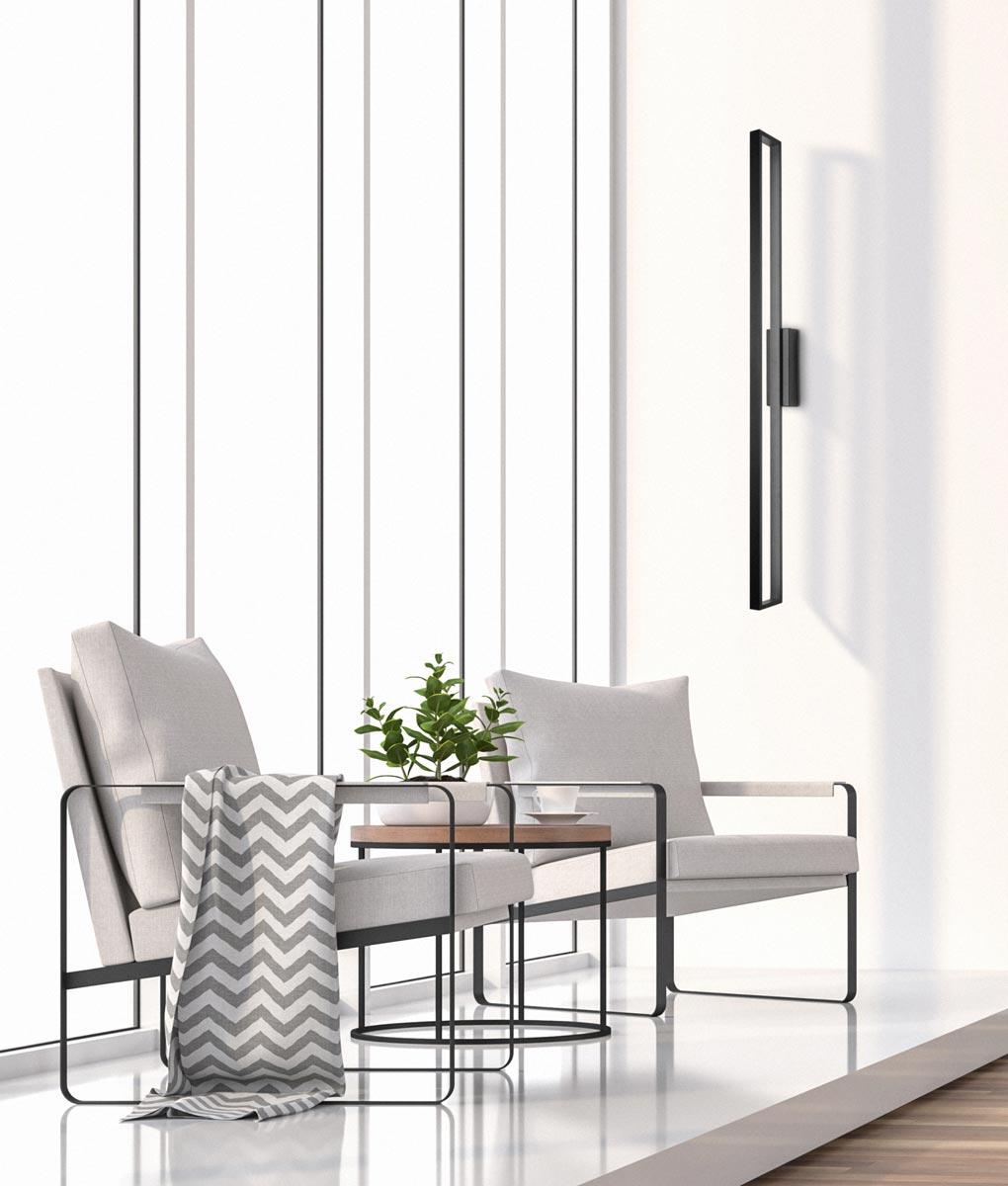 Aplique de diseño minimalista, modelo DURBAN LED. Acabado en negro. Fabricada en aluminio. Voltaje 220-240V y fuente LED 30W luz cálida 3000K 2300Lm (incluida).