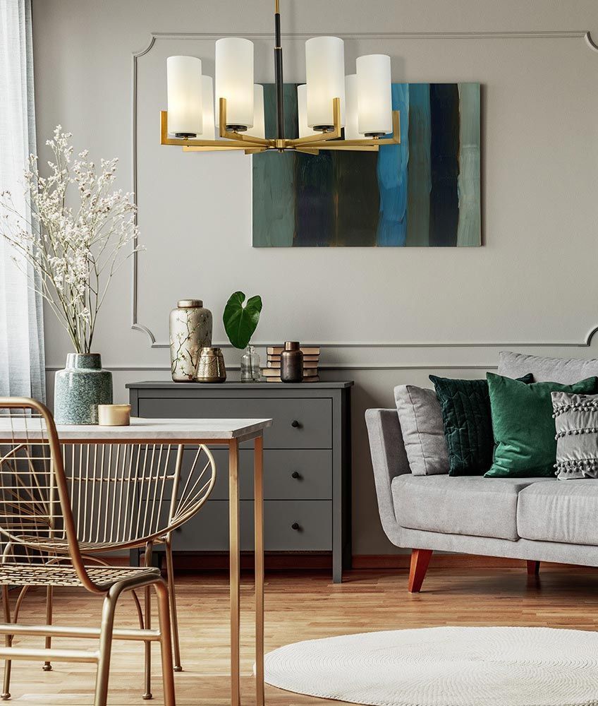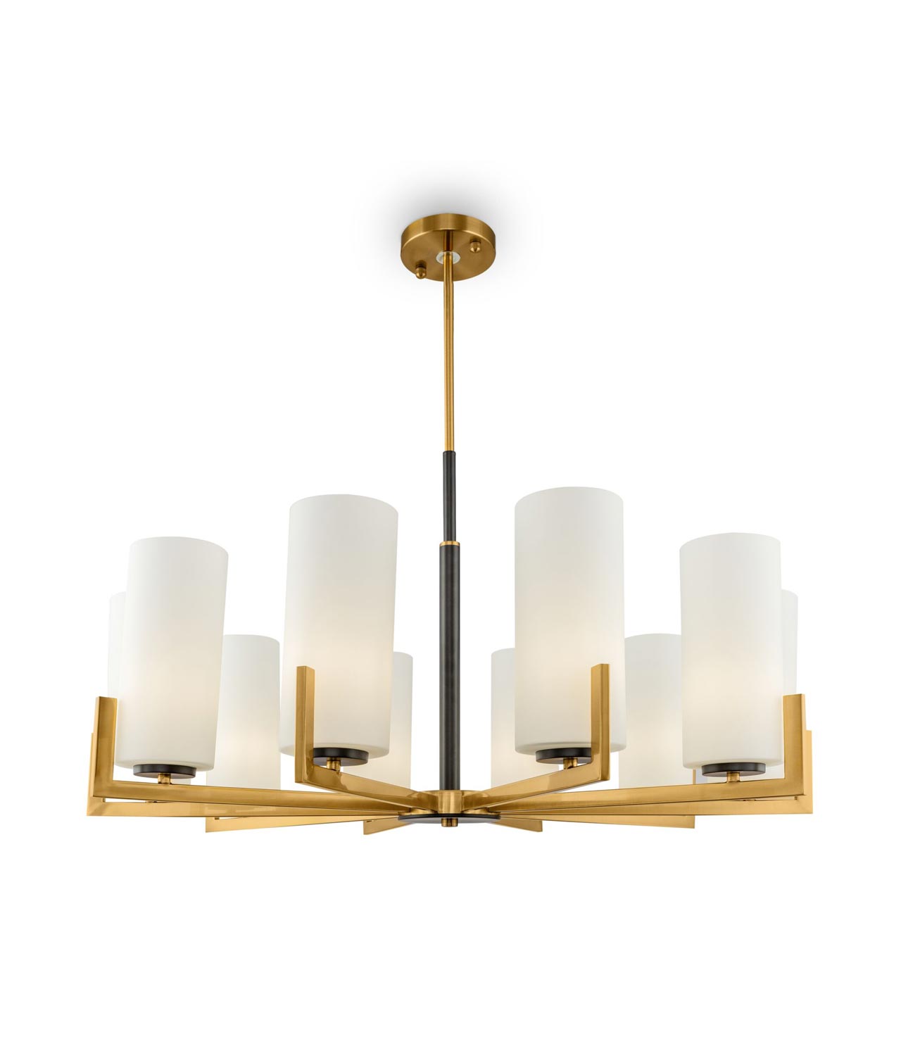 Lámpara elegante y moderna modelo Fortano. Acabado en color blanco y estructura tono latón. Fabricado en metal y cristal. Voltaje 220-240V y fuente de luz por 10 bombillas E27 MÁX 40W (no incluidas).