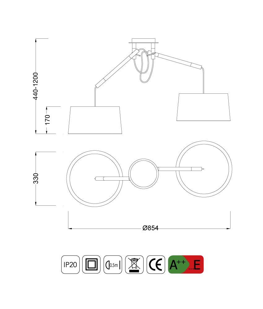 Lámpara blanca 2 brazos NORDICA que combina metal blanco y madera natural con pantallas en blanco roto. Iluminación mediante 2 luces E27 (no incl.). También disponible con acabados en negro.