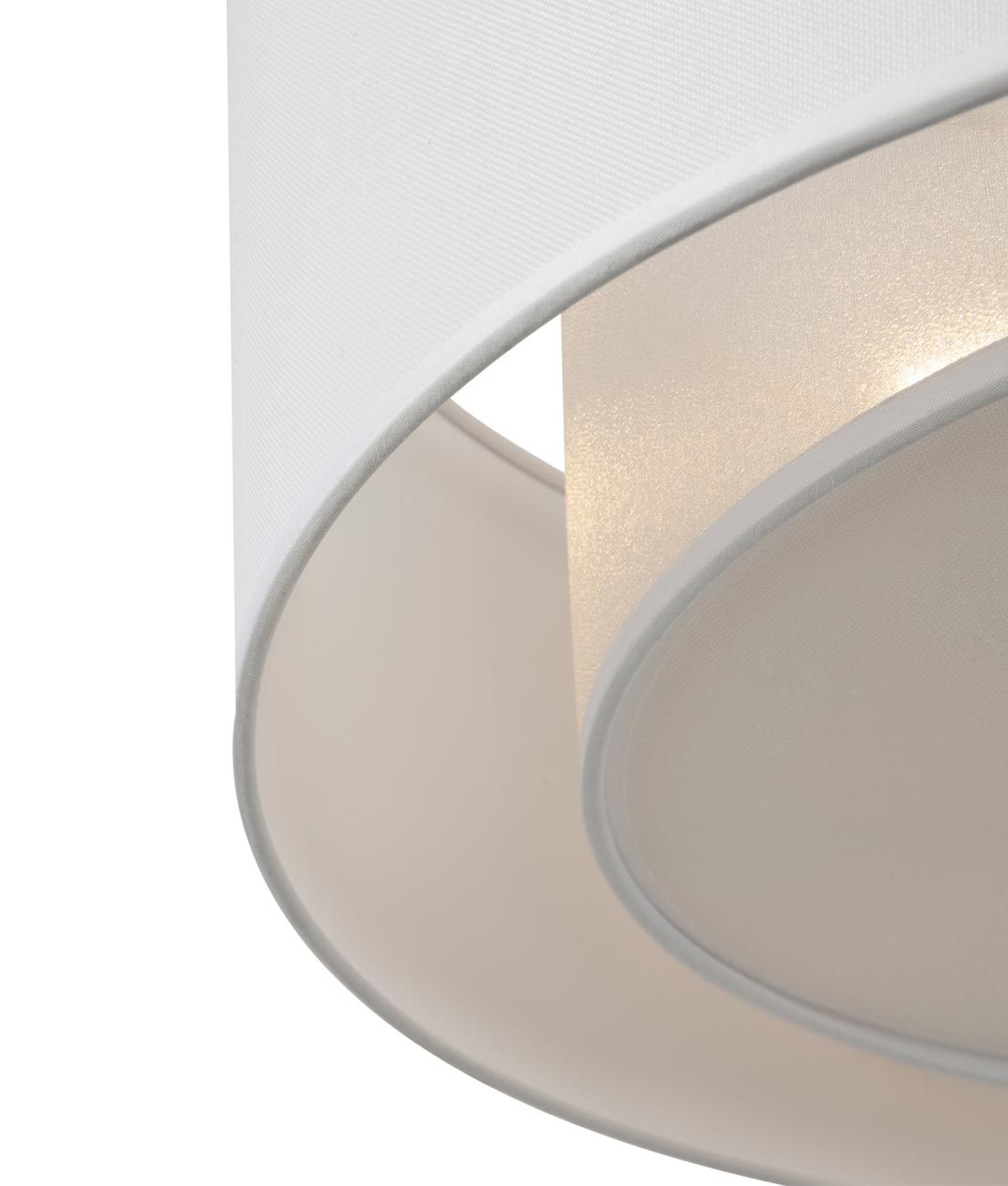 Lámpara moderna modelo Bergamo. Acabado en color blanco. Fabricado en metal y pantalla textil. Voltaje 220-240V y fuente de luz por 3 bombillas E27 MÁX 60W (no incluidas).
