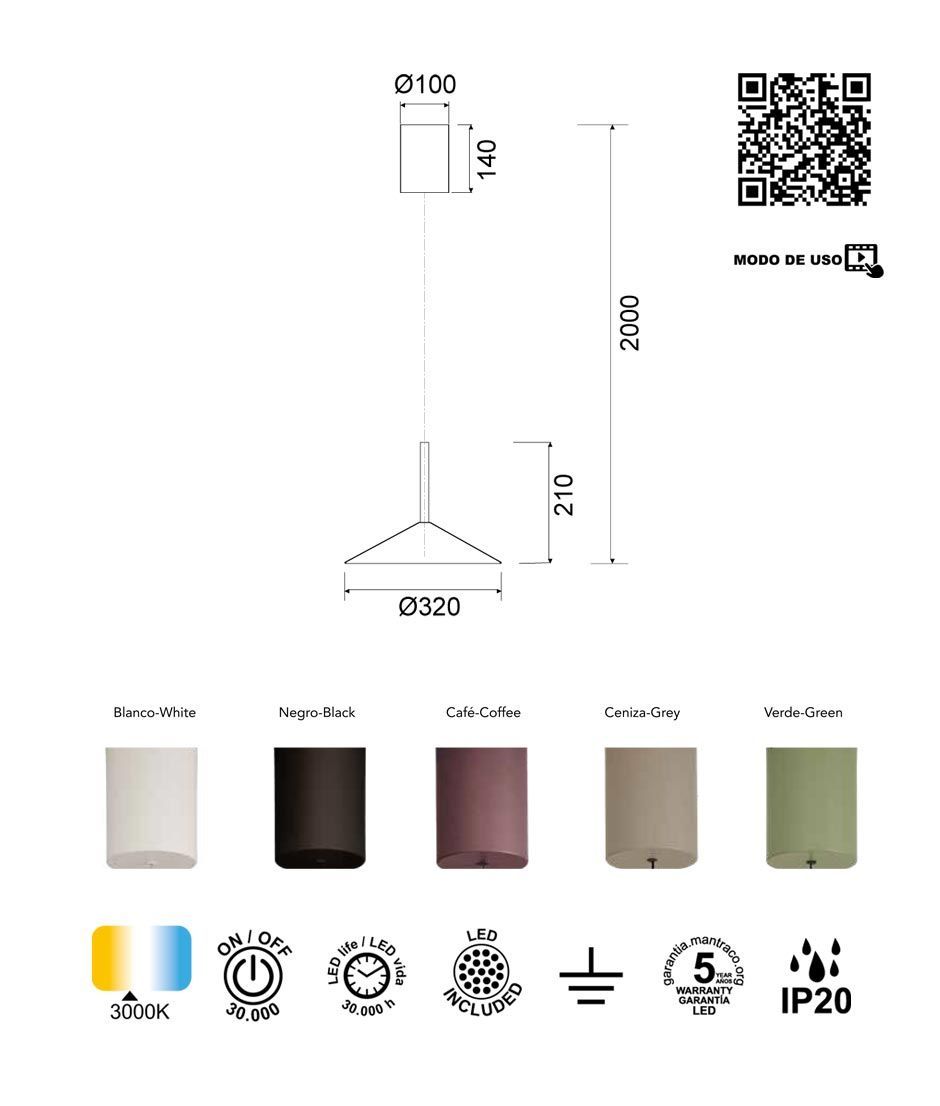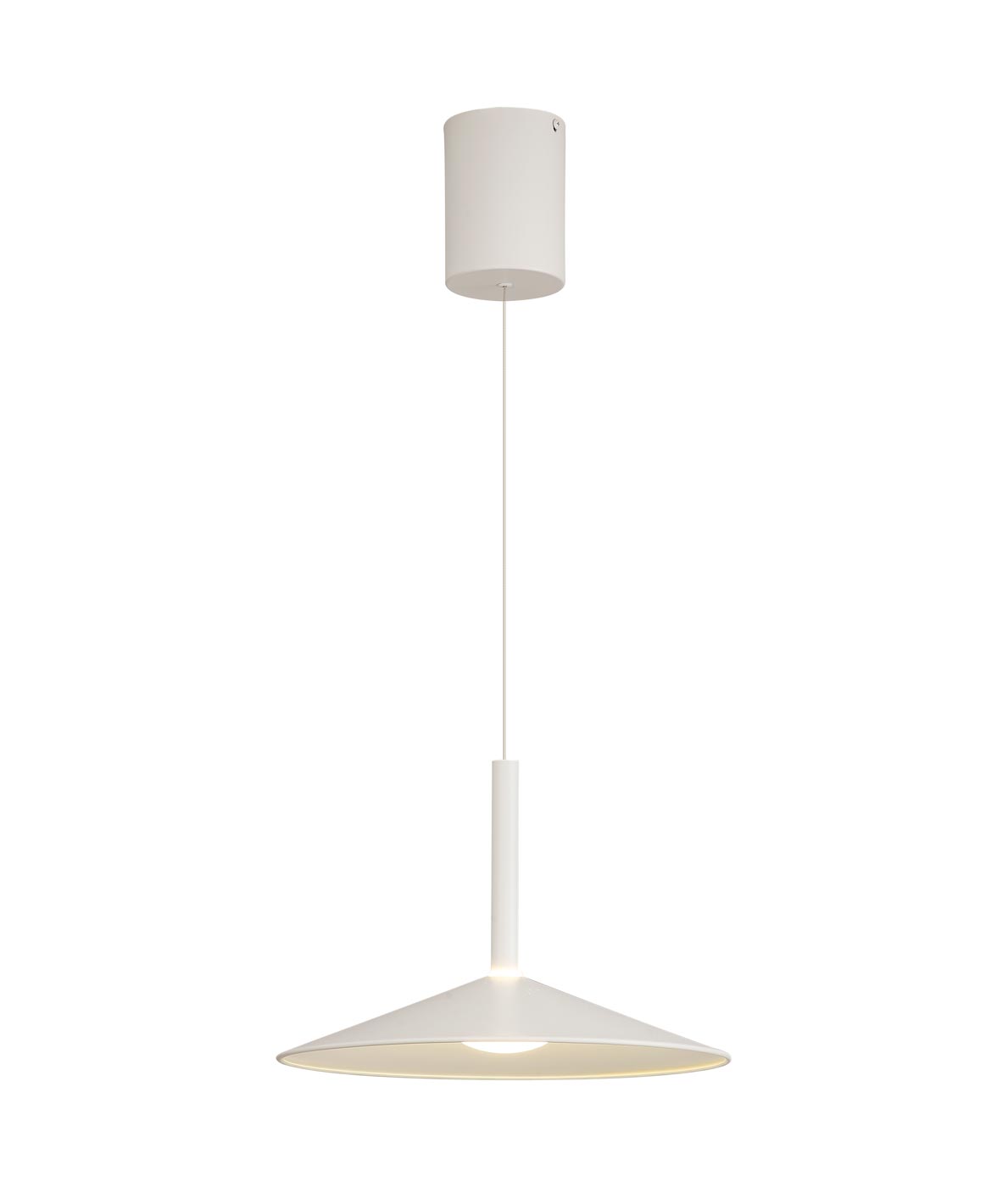 Lámpara de techo modelo Calice. Se puede ajustar la altura para subir y bajar manualmente. Acabado en color blanco. Fabricado en aluminio. Voltaje 220-240V y fuente de luz cálida LED 9W 3000K 800Lm (incluida).