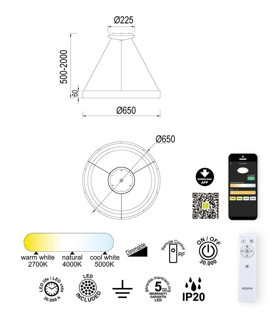 Lámpara blanca Ø 65 cm NISEKO II LED 60W