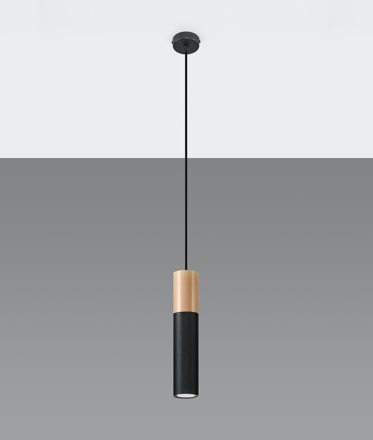 Lampara colgante negra y madera PABLO