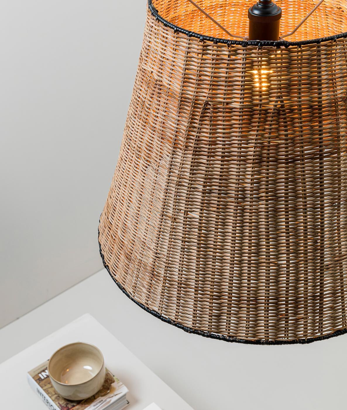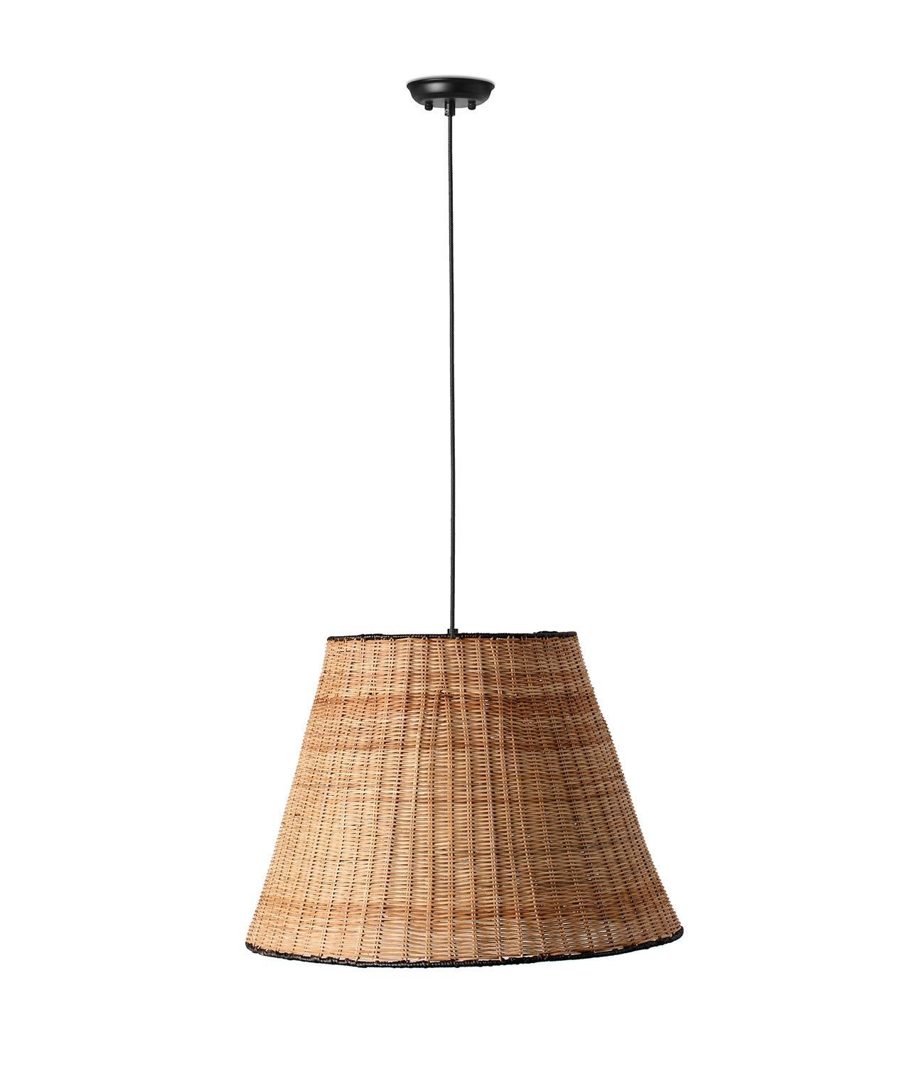 Lámpara colgante de 56 cm de diámetro de diseño estilo rústico, modelo SUMBA. Ideal para la iluminación interior de todo tipo de espacios. Acabado en color negro y ratán. Fabricada en acero y tulipa de ratán. Voltaje 100-240V y fuente de luz por una bombilla E27 máx. 15W LED (no incluida).