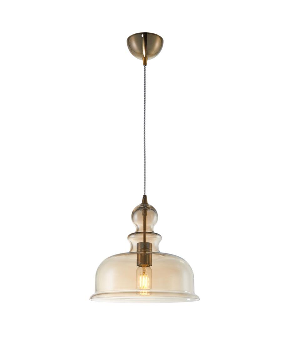 Lámpara modelo Tone. Acabado en color bronce. Fabricado en metal y cristal. Voltaje 220-240V y fuente de luz 1 bombilla E27 MÁX 15W LED (no incluida).