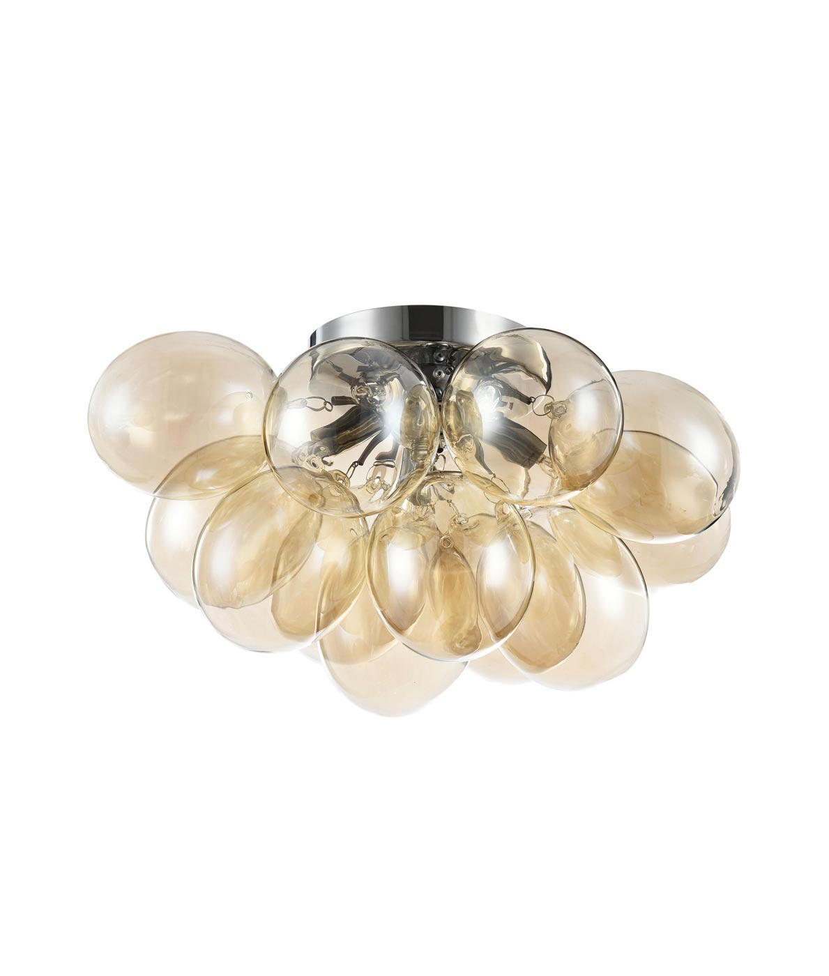 Lámpara moderna modelo Balbo. Acabado en color cromo. Fabricado en metal y cristal coñac. Voltaje 220-240V y fuente de luz por 4 bombillas G9 28W (no incluida).