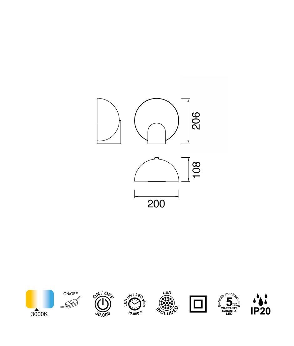 Lámpara de mesa negra Ø 20 cm OCULO LED 5W