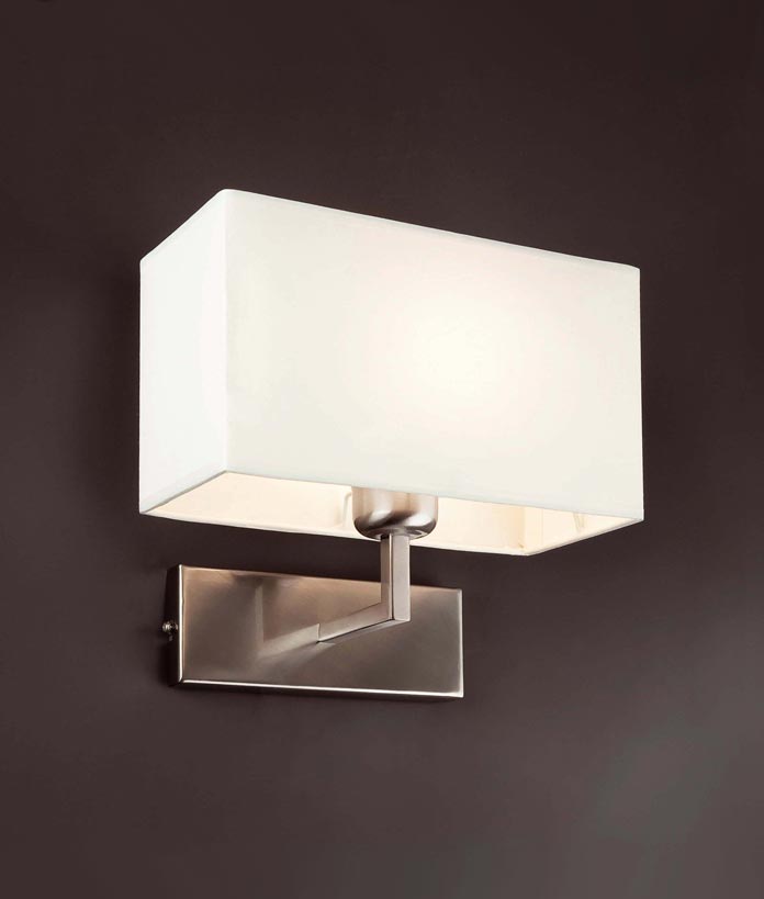 Lámpara para la pared RODA níquel mate. Aplique de la marca Faro. Diseño de aspecto moderno ideal para la iluminación interior del hogar. Fabricada en metal y pantalla textil. Acabado en níquel mate y pantalla blanca. Iluminación por 1 x E27 MAX 60W (no incl.). Puedes ver otras lámparas de este tipo o similares yendo a la categoría principal.