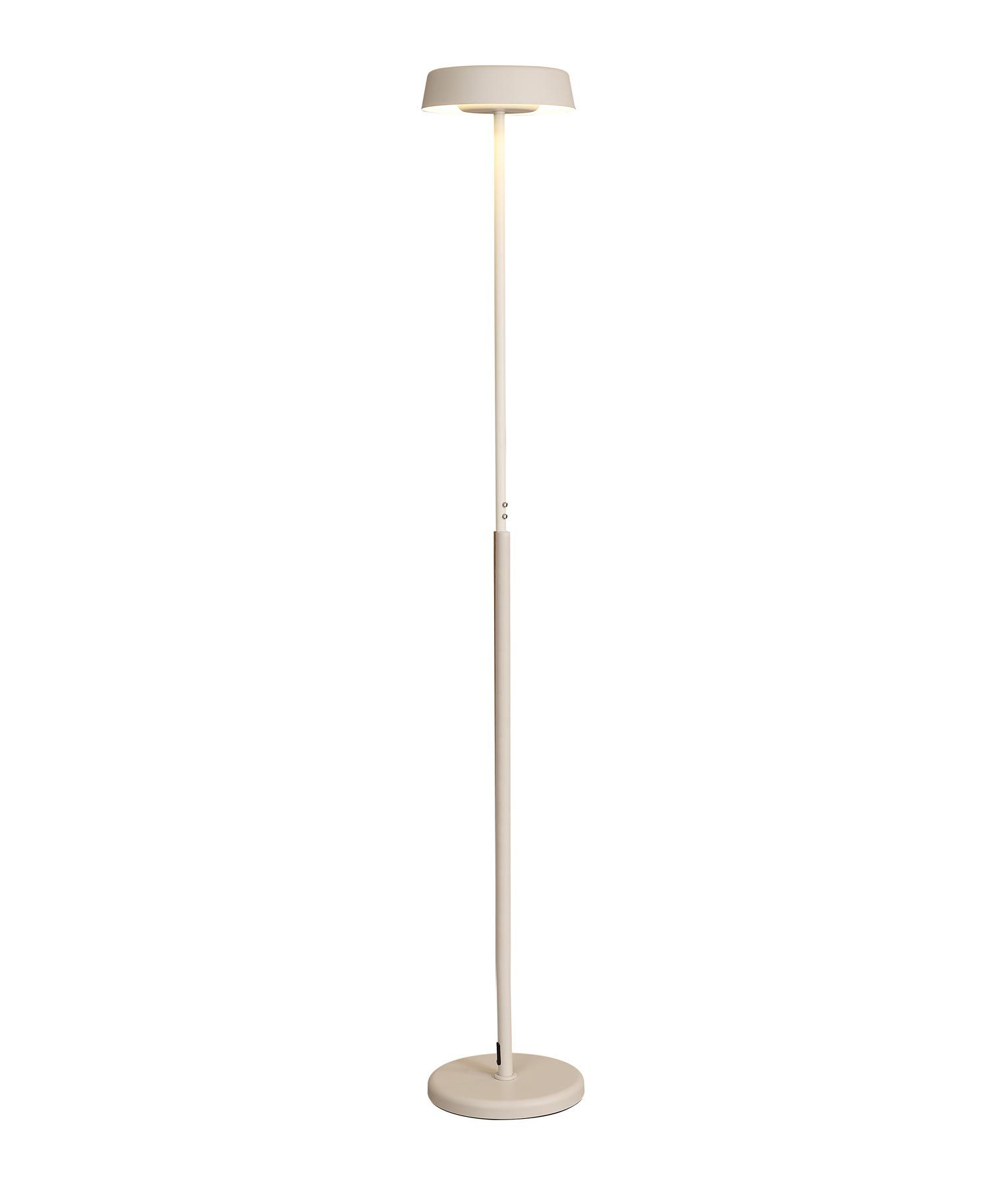 Lámpara de pie modelo Noa II. Luz regulable con dos opciones para encender en la parte superior e inferior de la tulipa. Acabado en color blanco. Fabricado en acero. Voltaje 220-240V y fuente de luz cálida regulable en intensidad LED 15W + 15W 3000K 2800Lm (incluida).