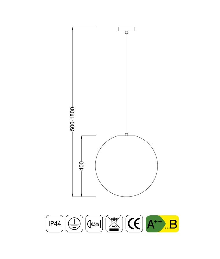 Lámpara colgante mediana para interior y exterior modelo AVORIAZ. Acabado en color blanco. Diseño moderno. Fabricada con difusor polietileno. Voltaje 220-240V y fuente de luz 1 x E27 Max 20W (no incl.).