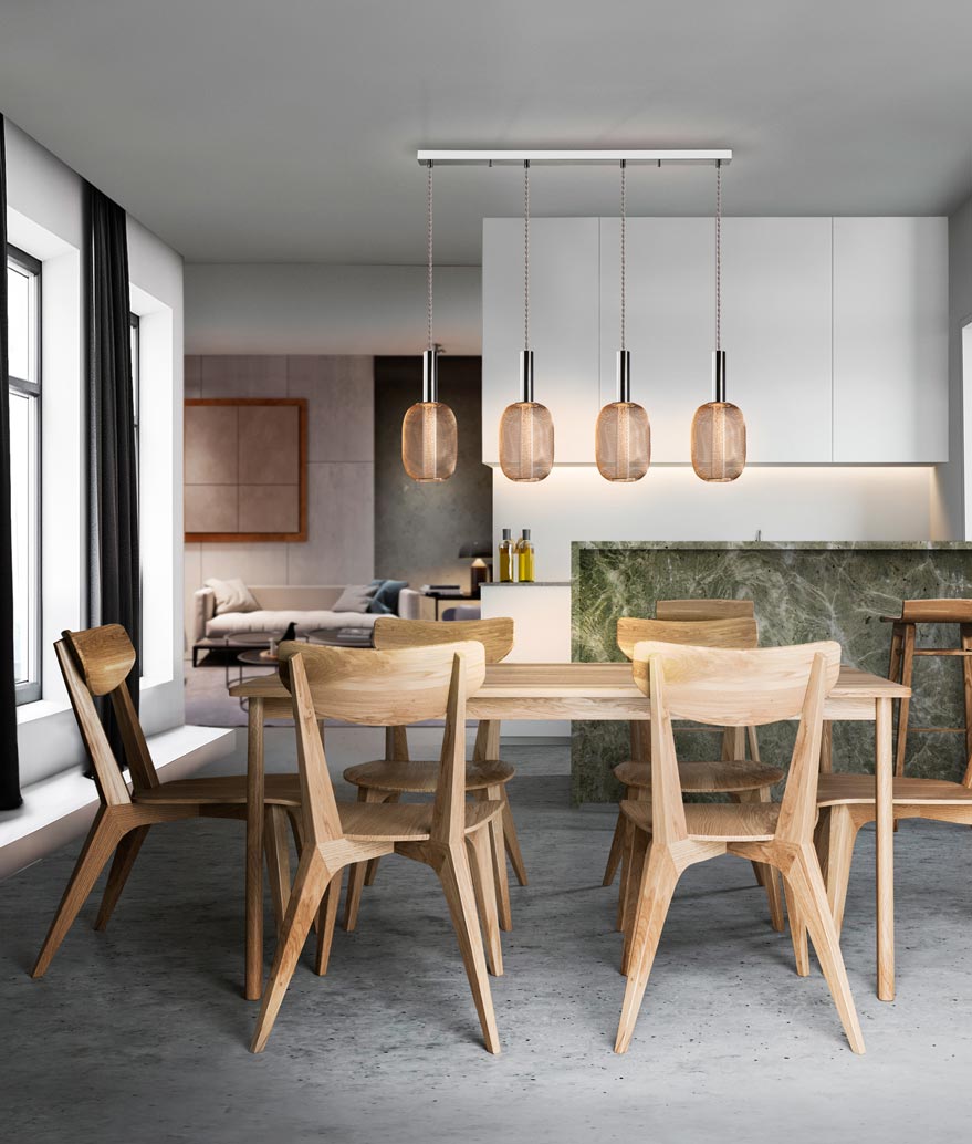 Lámpara lineal 4 luces dimable cromo y oro MICRON
