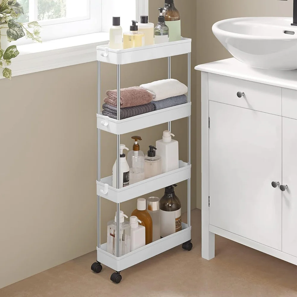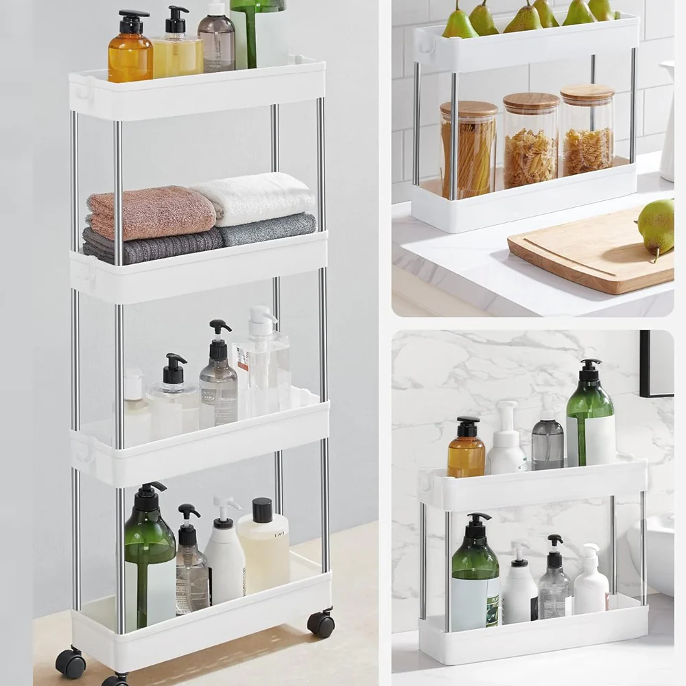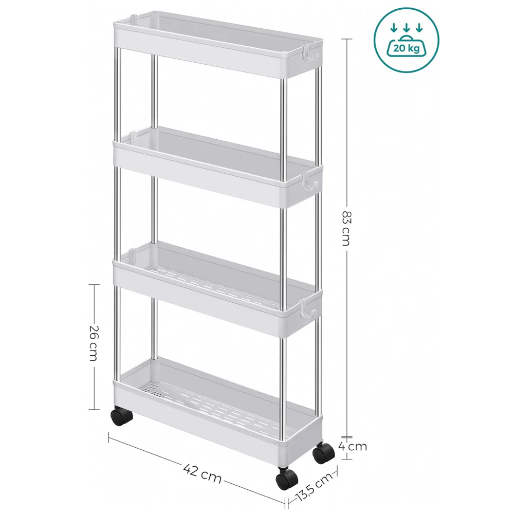 - ¡Se termina el desorden! ¿El caos está tomando el control? Todo lo que necesitas es 40 x 13 x 86.5 cm del espacio para este carrito con 4 baldas a clasificar todos los productos para el cuerpo en el baño, los utensilios de cocina o los documentos de oficina. Este carrito de almacenamiento de cocina de 4 niveles se instalará en poco tiempo con instrucciones claras, piezas individuales etiquetadas y sin necesidad de herramientas.