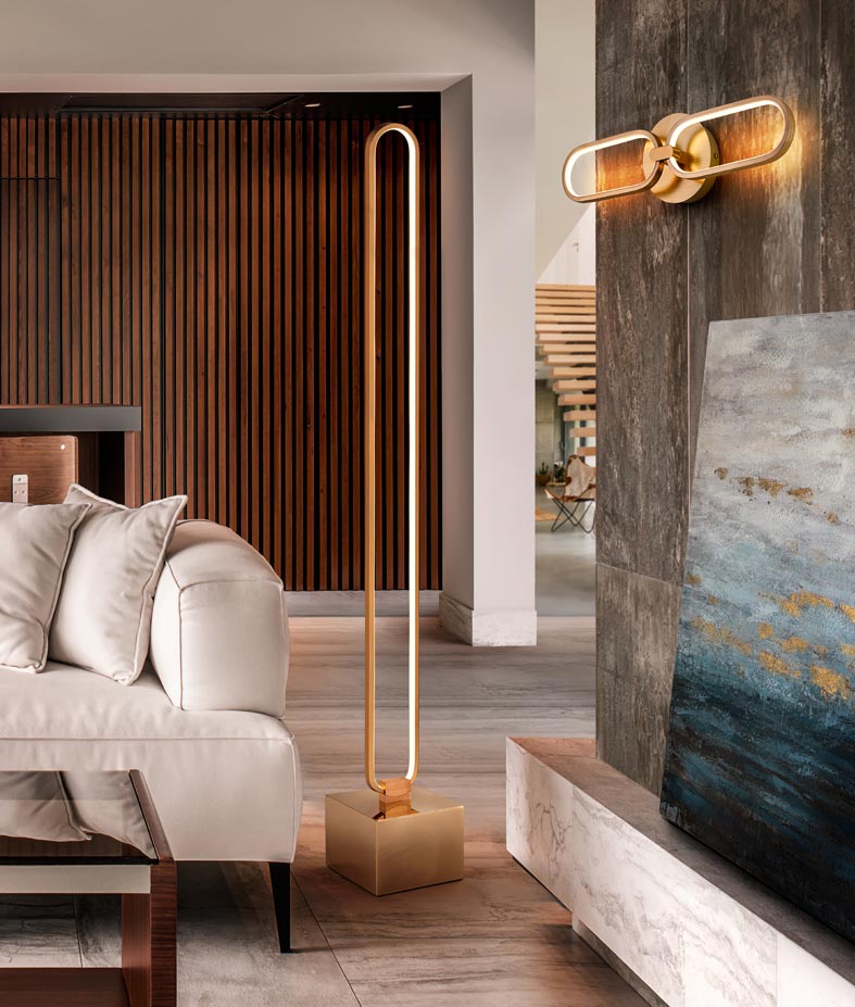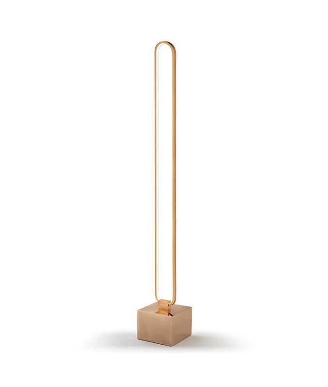Lámpara de pie estilo moderno, modelo COLETTE. Ideal para la iluminación decorativa de interiores. Fabricado en aluminio cepillado y base de metal pintura mate, acabado oro rosa. Difusor de silicona opal. Fuente de luz cálida LED 32,4W 3000K 2250Lm (incluida). Voltaje 100-240V.