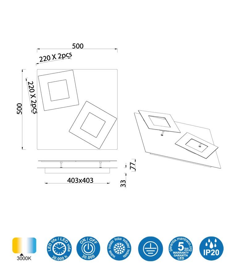 Plafón de techo modelo DALIA. Acabado en color blanco. Fabricado en aluminio. Voltaje 220-240V y fuente de luz cálida LED de 48W 3000K 3360Lm (incl.).
