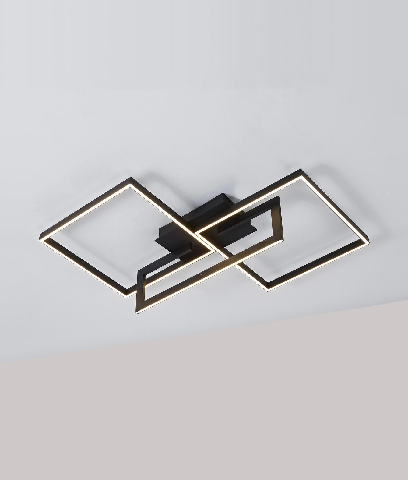 Plafón de diseño, modelo MURAL LED. Ideal para la iluminación decorativa de interiores. Fabricado en aluminio. Acabado en negro. Voltaje 220-240V y fuente de luz LED 48W luz cálida 3000K 3840Lm (incluida).