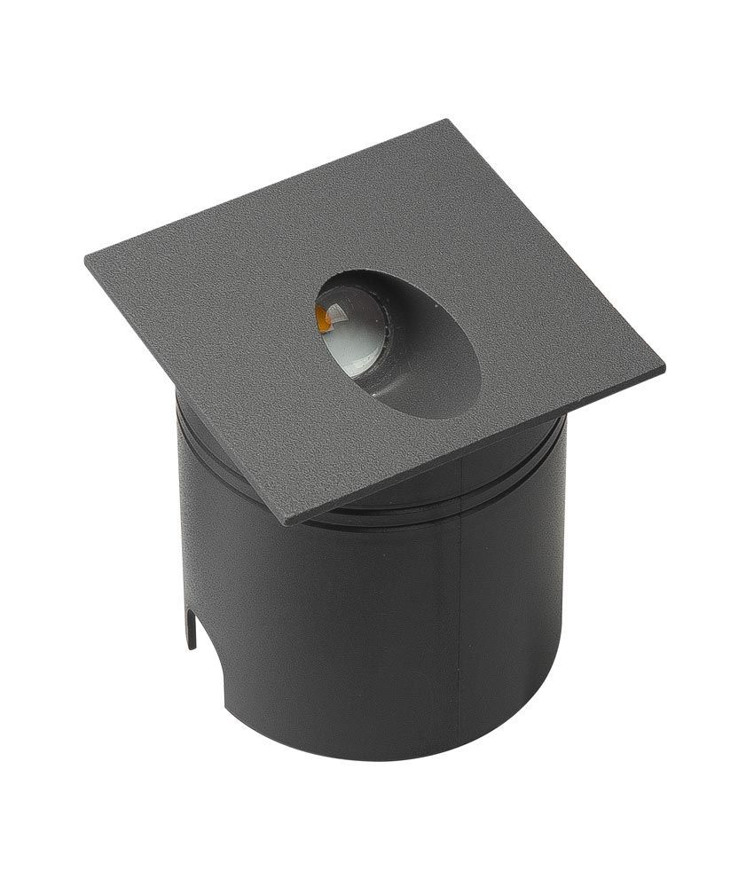 Señalizador empotrable exterior con alta protección IP65, modelo ASPEN. Acabado en color gris oscuro. Ideal para señalizar los espacios de exterior. Fabricada en aluminio. Voltaje 200-240V y fuente de luz cálida LED de 3W 3000K (incl.).