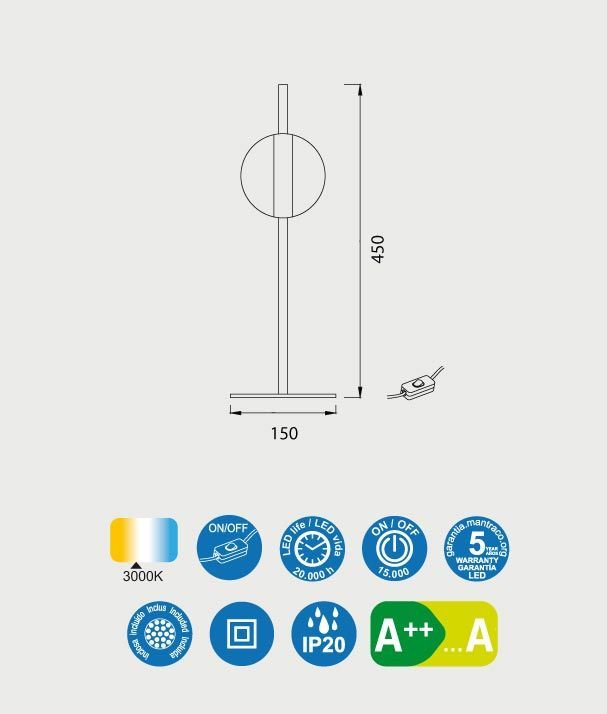 Lámpara de mesa de estilo moderna, modelo CUBA LED. Acabado en negro y dorado. Fabricada en metal. Voltaje 220-240V y fuente de luz cálida LED de 18W 3000K 1350Lm (incluida).