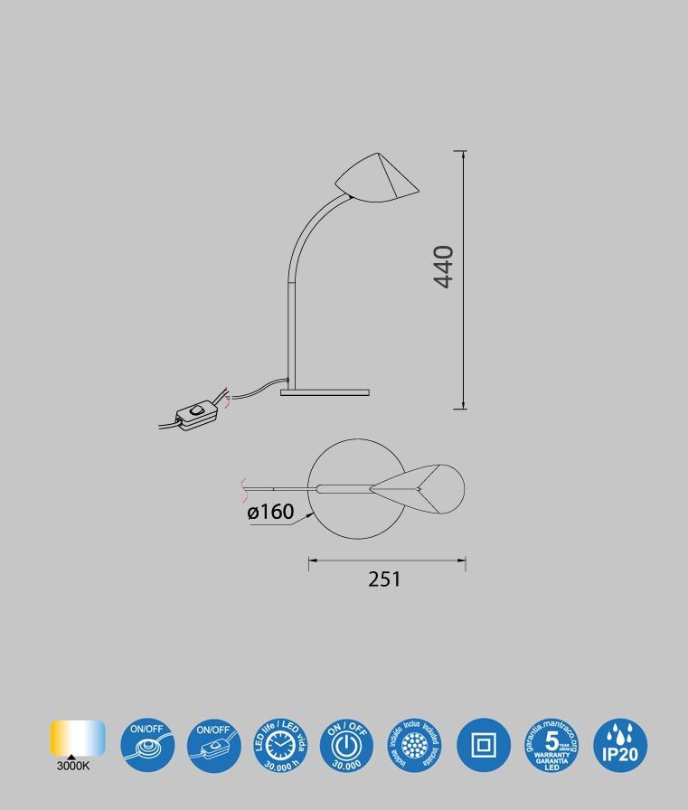 Sobremesa negro 44 cm altura CAPUCCINA LED