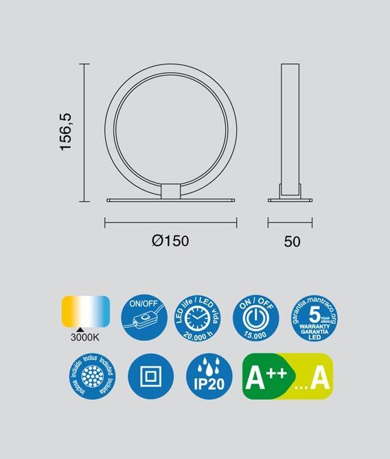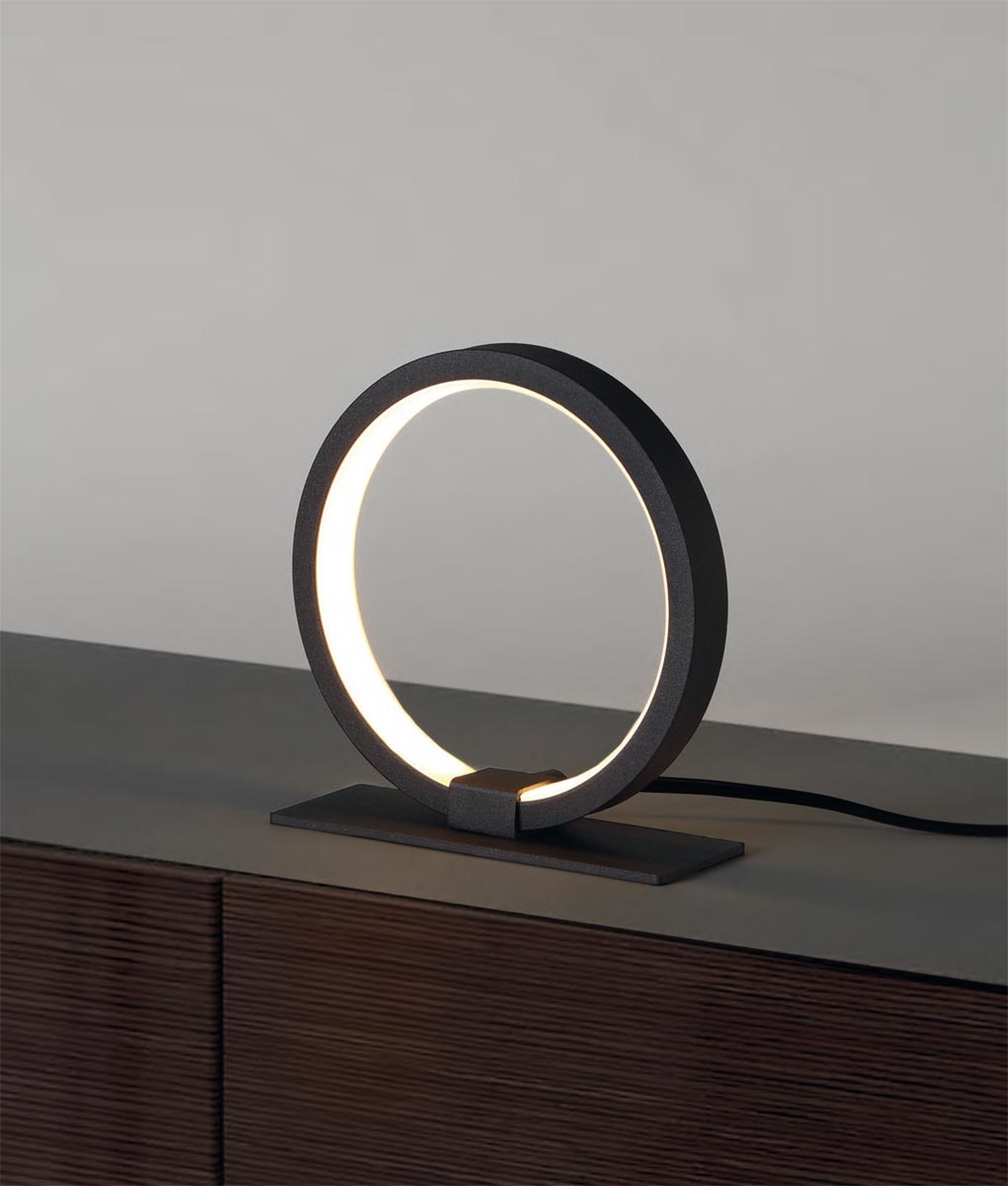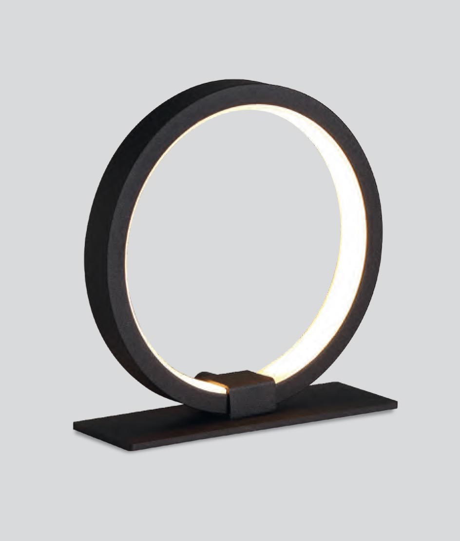 Lámpara de mesa estilo moderno y minimalista, modelo KITESURF LED. Acabado en negro. Fabricada en metal. Voltaje 220-240V y fuente de luz cálida LED de 8W 3000K 380Lm (incluida).