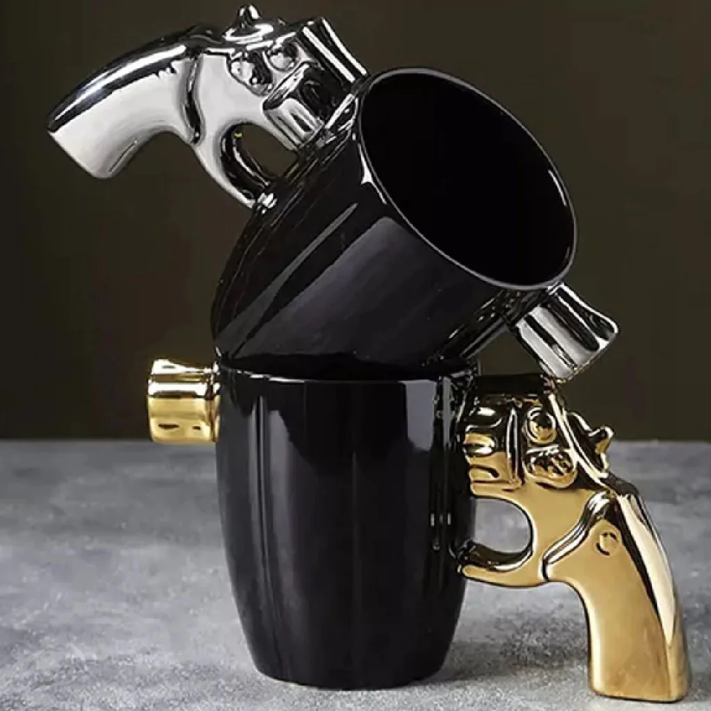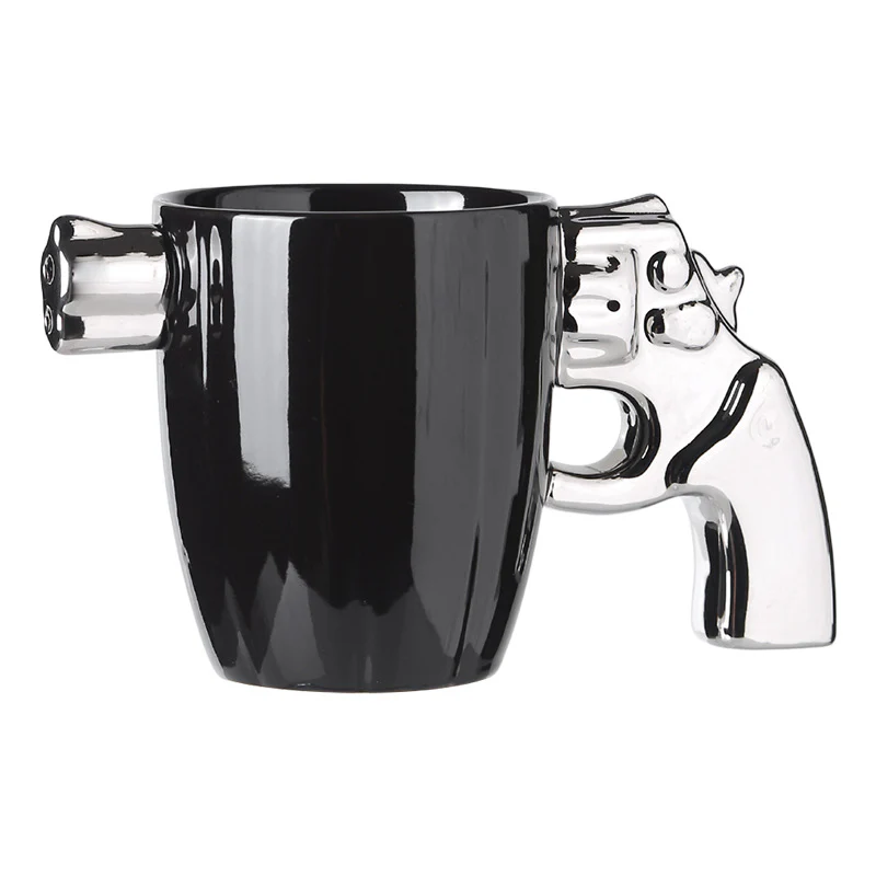 Diseño exclusivo tipo pistola: El asa de esta taza simula la empuñadura de un arma, lo que la convierte en una taza de cerámica original y divertida.
