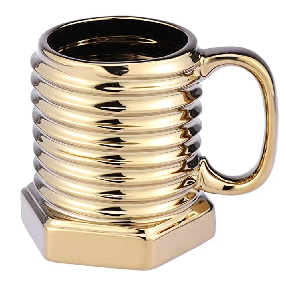 • Desayuno cool: ¿Quieres tomar té o café por la mañana con una taza única y especial? – ¡Nuestra taza de céramica con forma de tornillo dorado será tu elección perfecta!