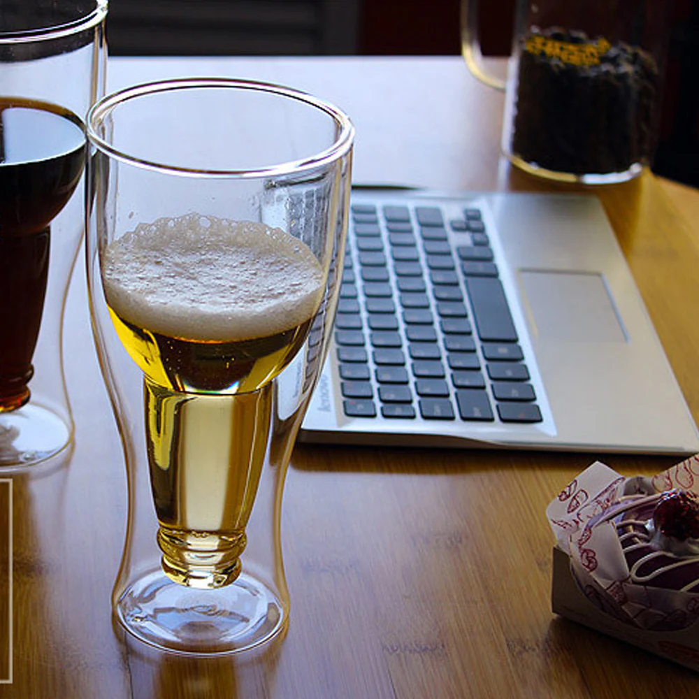 - Mantiene las bebidas frías: El aislamiento de doble pared de nuestros vasos mantiene la cerveza más fría,se ve bellamente suspendida en el aire.